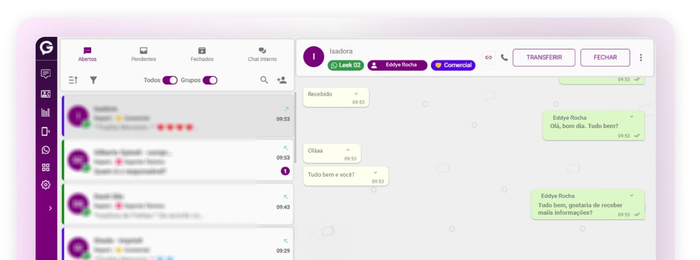 A interface é super intuitiva e a integração com nossa equipe foi simples e teve muito amparo do time da Leek. Com certeza foi um divisor de águas para nosso atendimento!